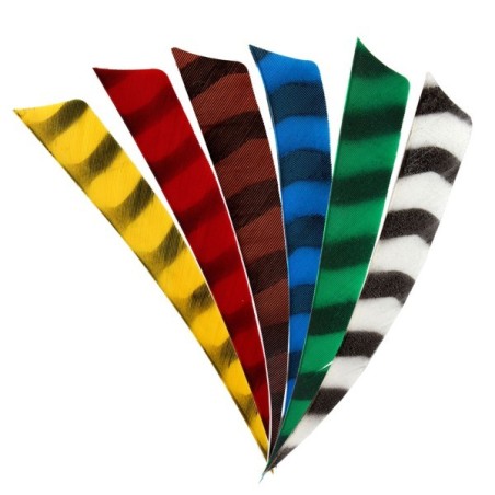 Nos plumes avec des motifs de couleurs barrées donnent à votre flèche un look « classique » spécial et sont utilisées par de nombreux archers à travers le monde comme un moyen de se connecter à l'histoire du tir à l'arc avec l'aspect et la sensation classiques que procurent les plumes barrées.